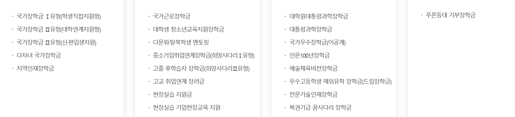 크게 1유형과 2유형으로 나누어지며, 1유형은 소득분위에 따라 지급되고, 2유형은 대학별 자체기준에 따라 지급됩니다.