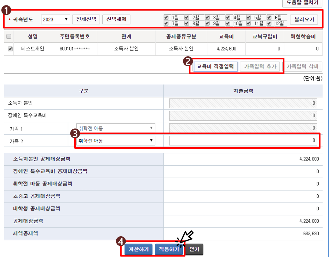 공제대상: 산후조리원 비용(한도 200만 원), 장애인활동지원급여 비용 중 실제 지출한 본인 부담금
