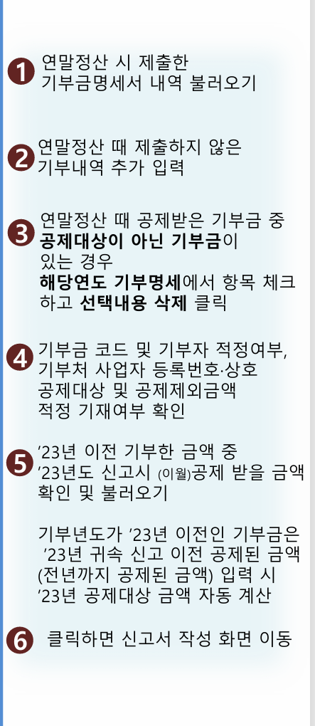 변경사항: 고향사랑기부금 세액공제를 받은 금액과 가상자산사업자에게 지급한 수수료는 소득공제 적용 대상에서 제외
