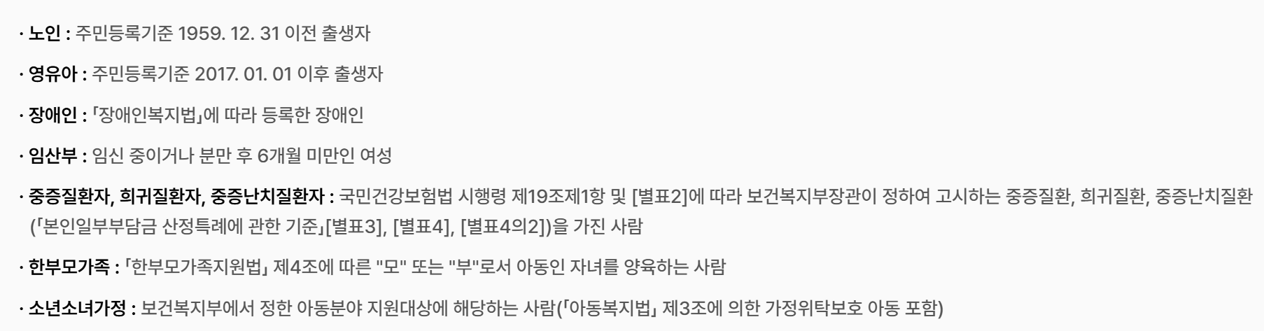 중증질환자, 희귀질환자, 중증난치질환자: 국민건강보험법 시행령에 따른 해당 질환자