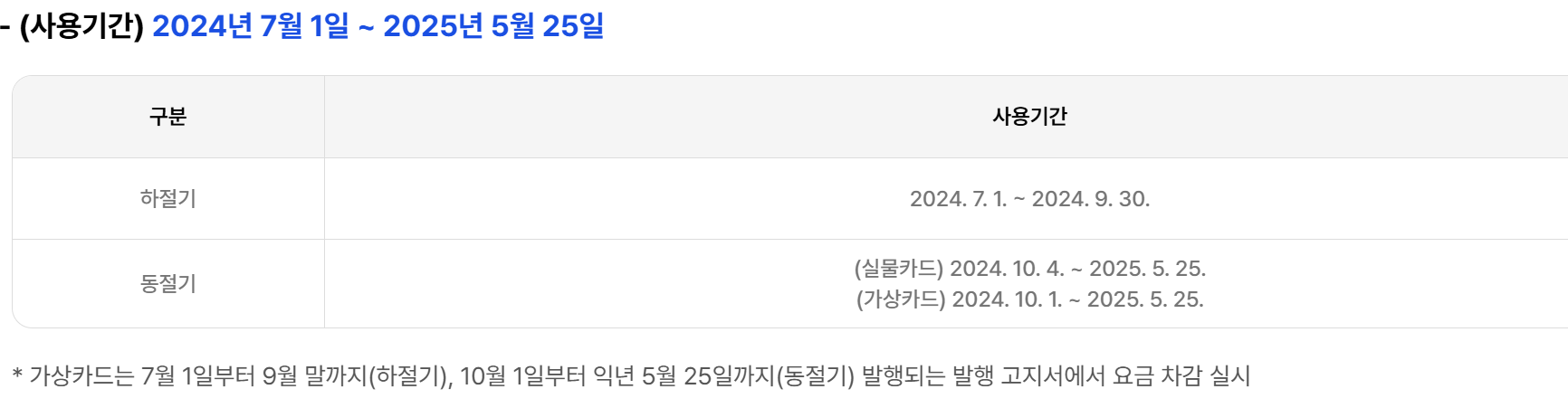 하절기 바우처: 2024년 7월 1일부터 9월 30일까지 사용 가능