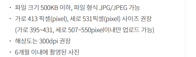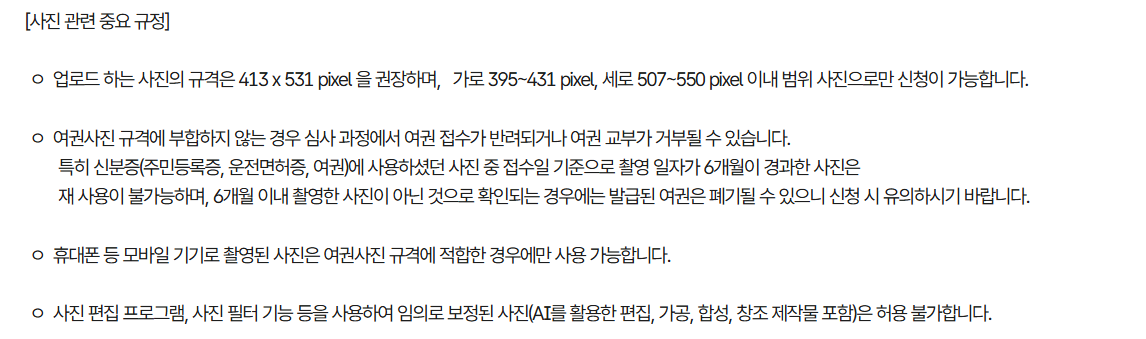 사진 규격 준수: 국제 표준에 맞지 않는 사진은 거부될 수 있습니다.