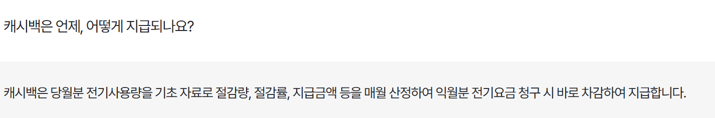 매월 산정된 캐시백은 다음 달 전기요금 청구 시 반영됩니다.
