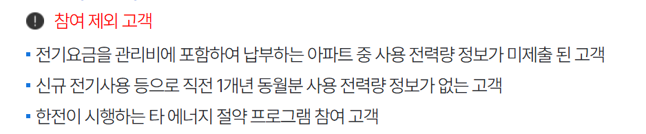 한전이 시행하는 다른 에너지 절약 프로그램에 참여 중인 고객.