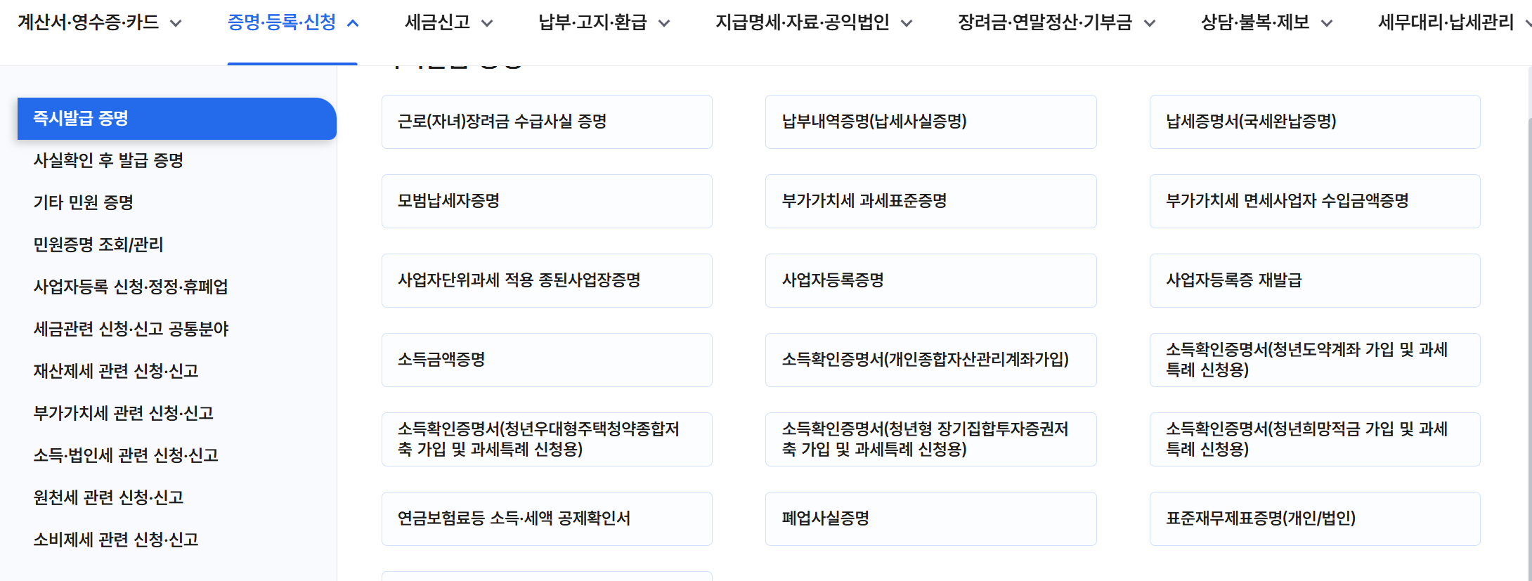 과세표준증명원은 국세청 홈택스 홈페이지에서 온라인으로 발급받을 수 있습니다.