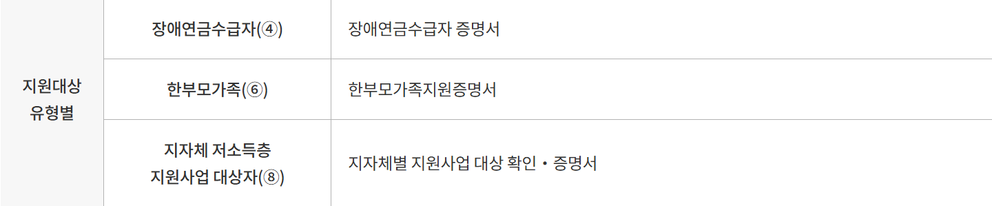 일반적으로 저소득층, 취약계층, 혹은 특정 조건을 충족하는 가구를 대상으로 제공됩니다.
