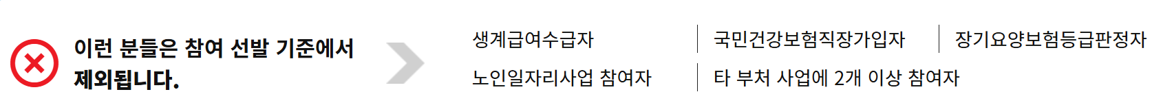 생계급여 수급자, 국민건강보험 직장 가입자 등은 일부 일자리에 신청이 제한될 수 있으므로, 해당 사항을 확인하시기 바랍니다.