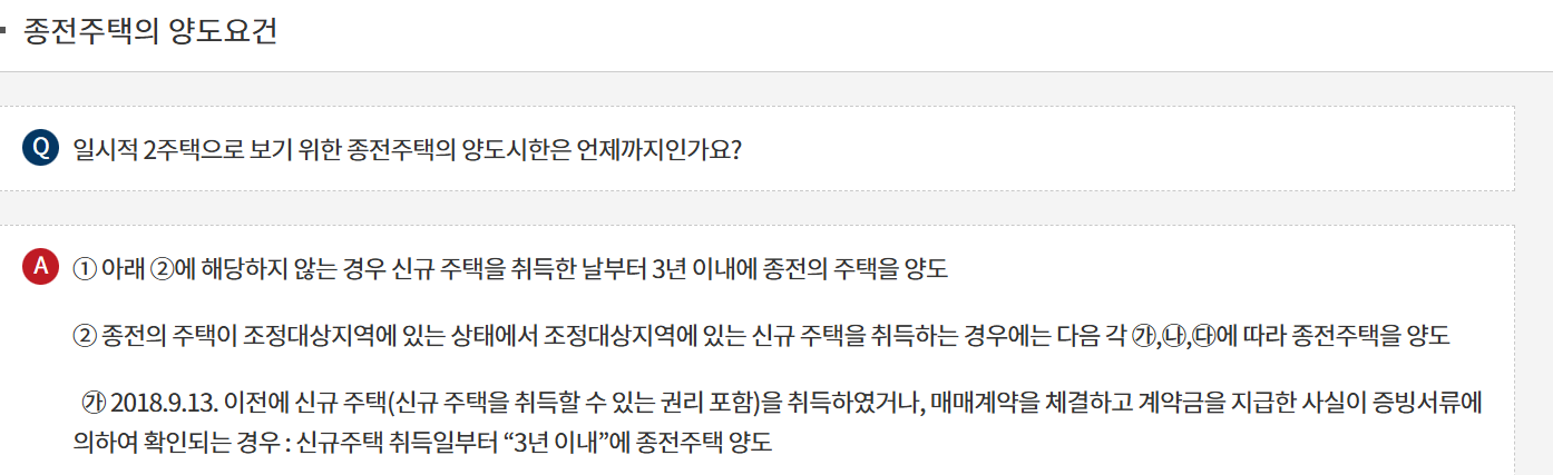 기존 주택 처분 시점은 신규 주택을 매수한 날로부터 최대 2년 이내여야 합니다.