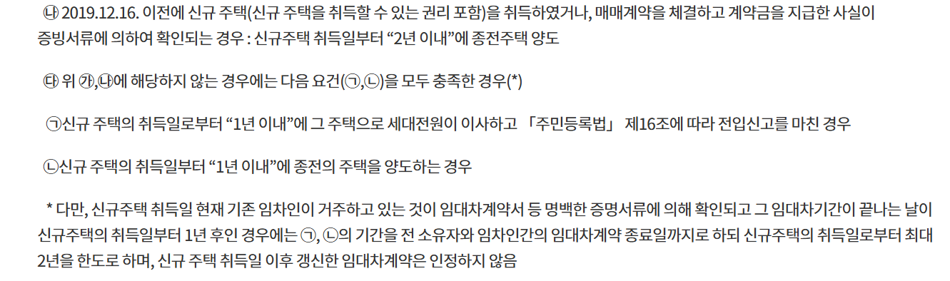 신규 주택 매수 후 1년 이내 기존 주택을 처분해야 합니다.