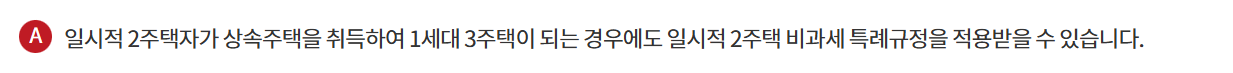 상속으로 인해 2주택 상태가 된 경우, 상속받은 주택은 비과세 혜택 적용에서 제외될 수 있습니다.