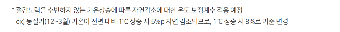 예를 들어, 동절기 기온이 전년도 대비 1°C 상승하면 기준 절감율은 5%에서 8%로 변경됩니다.