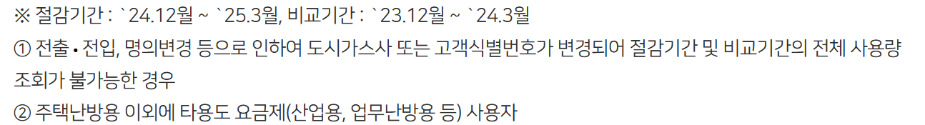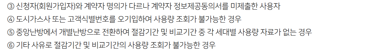 전출, 전입, 명의 변경 등으로 절감 기간과 비교 기간의 사용량 조회가 불가능한 경우 주택 난방용 이외의 요금제 사용자