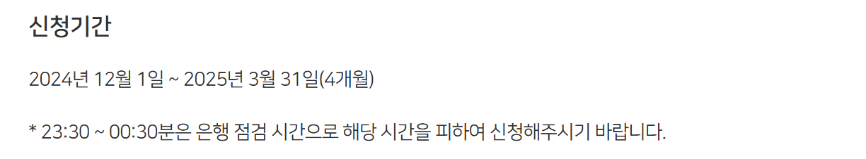 신청 기간은 2024년 12월 1일부터 2025년 3월 31일까지입니다.