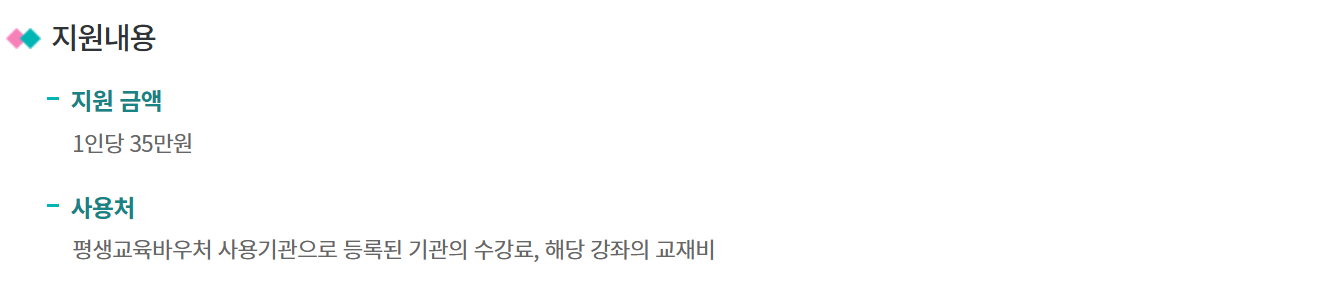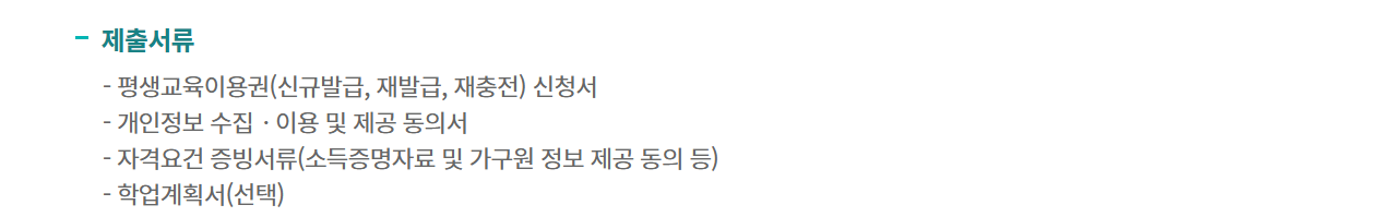 바우처를 통해 교육비를 지원받아 자격증, 취미 강좌, 또는 직업능력 향상 교육을 수강할 수 있습니다.