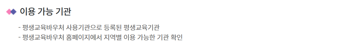 바우처를 사용할 수 있는 교육기관은 홈페이지에서 확인 가능하며, 각 교육기관마다 제공하는 강좌가 다르니 본인의 관심사에 맞는 교육 프로그램을 선택하면 됩니다.