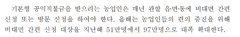 농업인들은 필요한 서류를 간편하게 제출하고, 직불금 지급 현황을 실시간으로 확인할 수 있어 행정 부담을 크게 줄일 수 있을 것으로 기대됩니다.