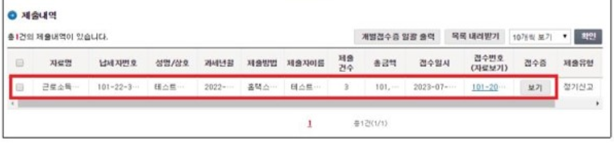 원하는 연도를 선택하면 해당 연도의 원천징수영수증이 화면에 나타납니다.