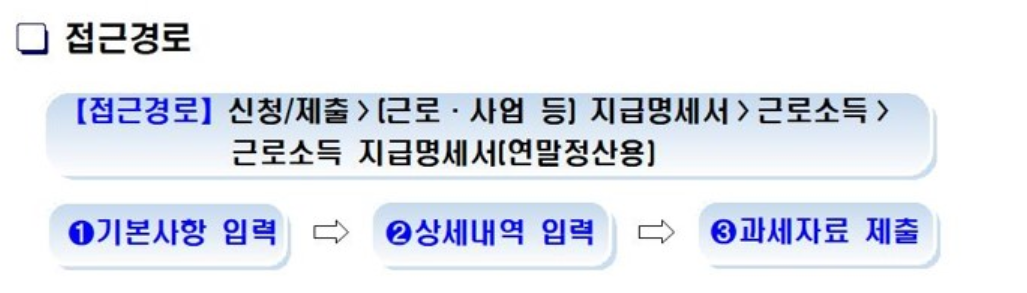 근로소득 지급명세서는 회사에서 국세청에 신고한 후 조회가 가능합니다.