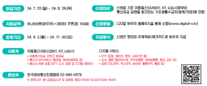 참여 조건 및 운영 방식 등 세부 내용은 디지털 바우처 홈페이지에서 확인할 수 있습니다.https://www.digital-v.kr/