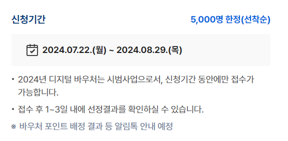 디지털 바우처 신청 기간이 정해져 있으니 기간 내에 신청해야 합니다.